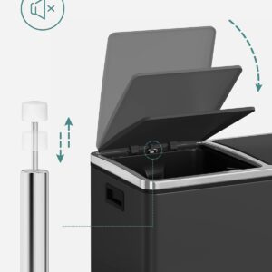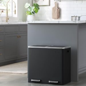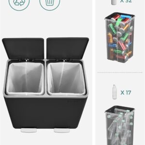 Cosul de reciclare dublu SONGMICS combina designul elegant cu functionalitatea. Cele doua compartimente de 24L fiecare faciliteaza sortarea deseurilor, iar capacele soft-close asigura o inchidere silentioasa si igienica.