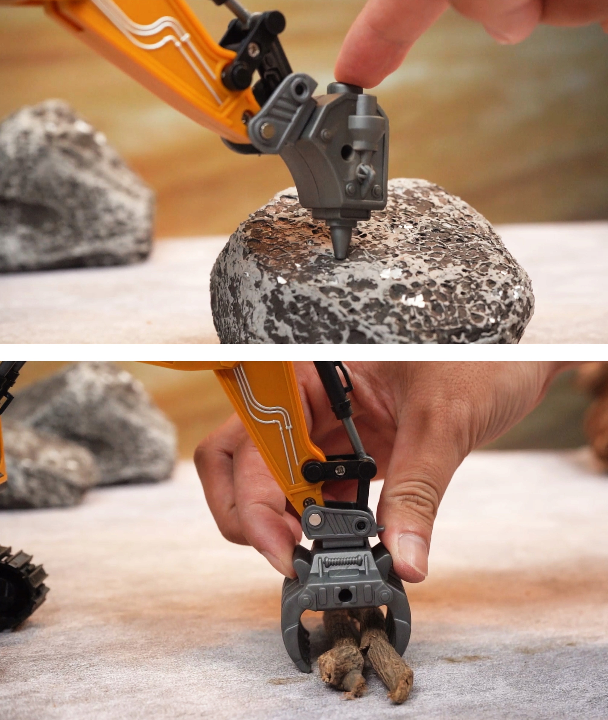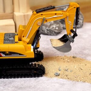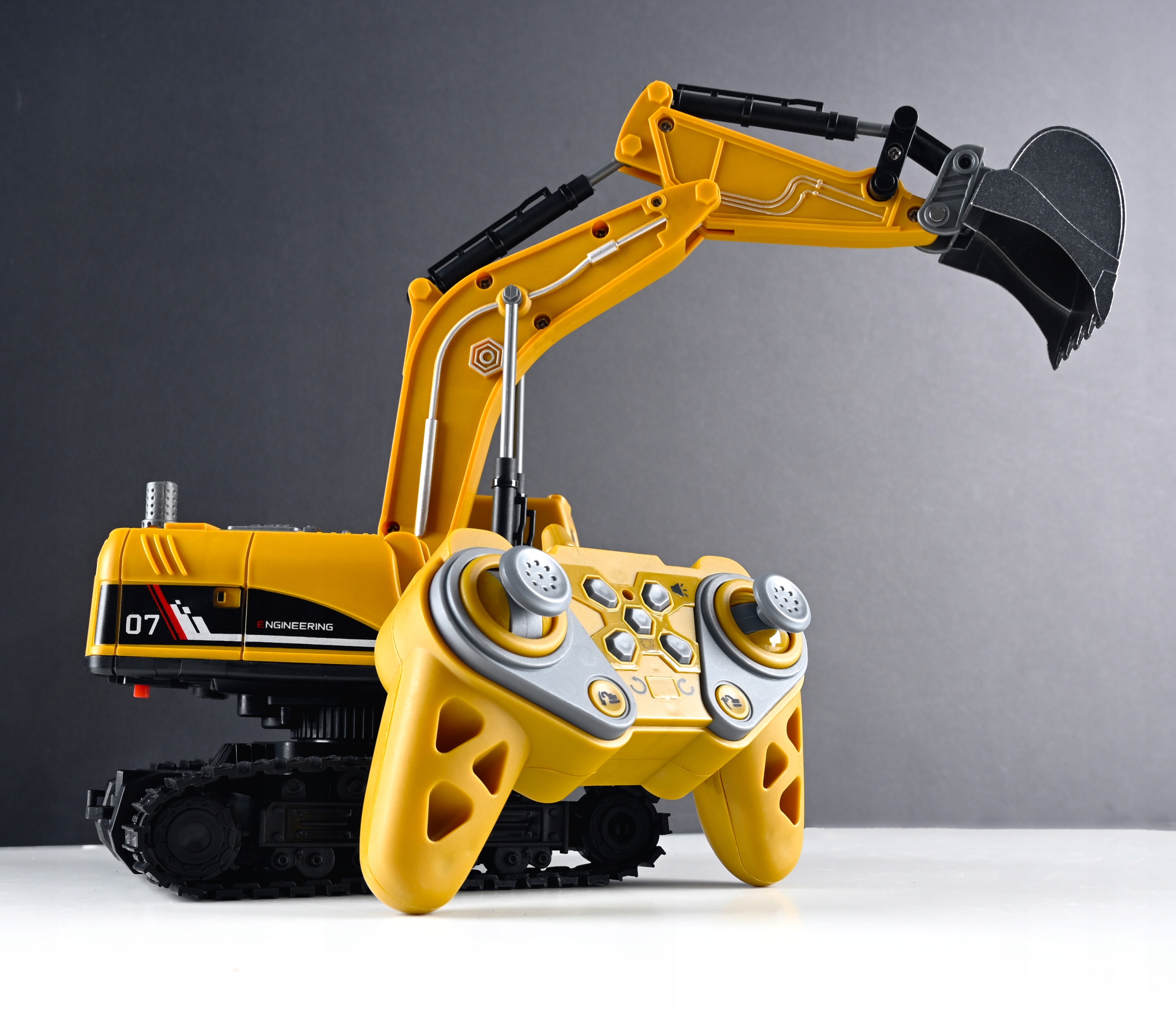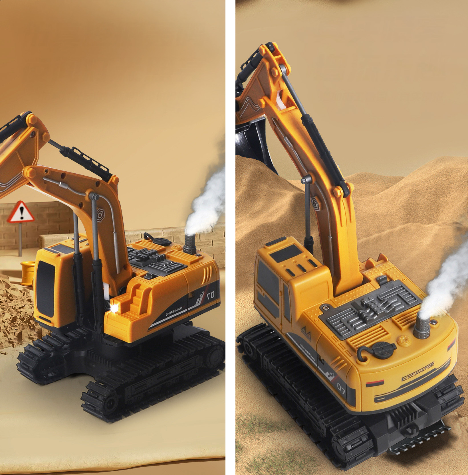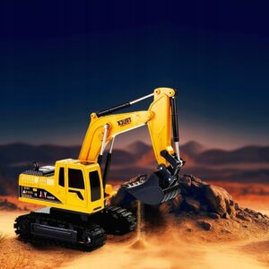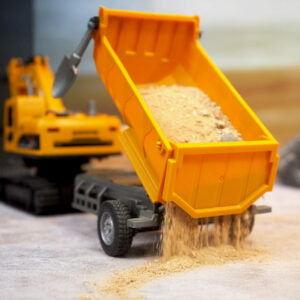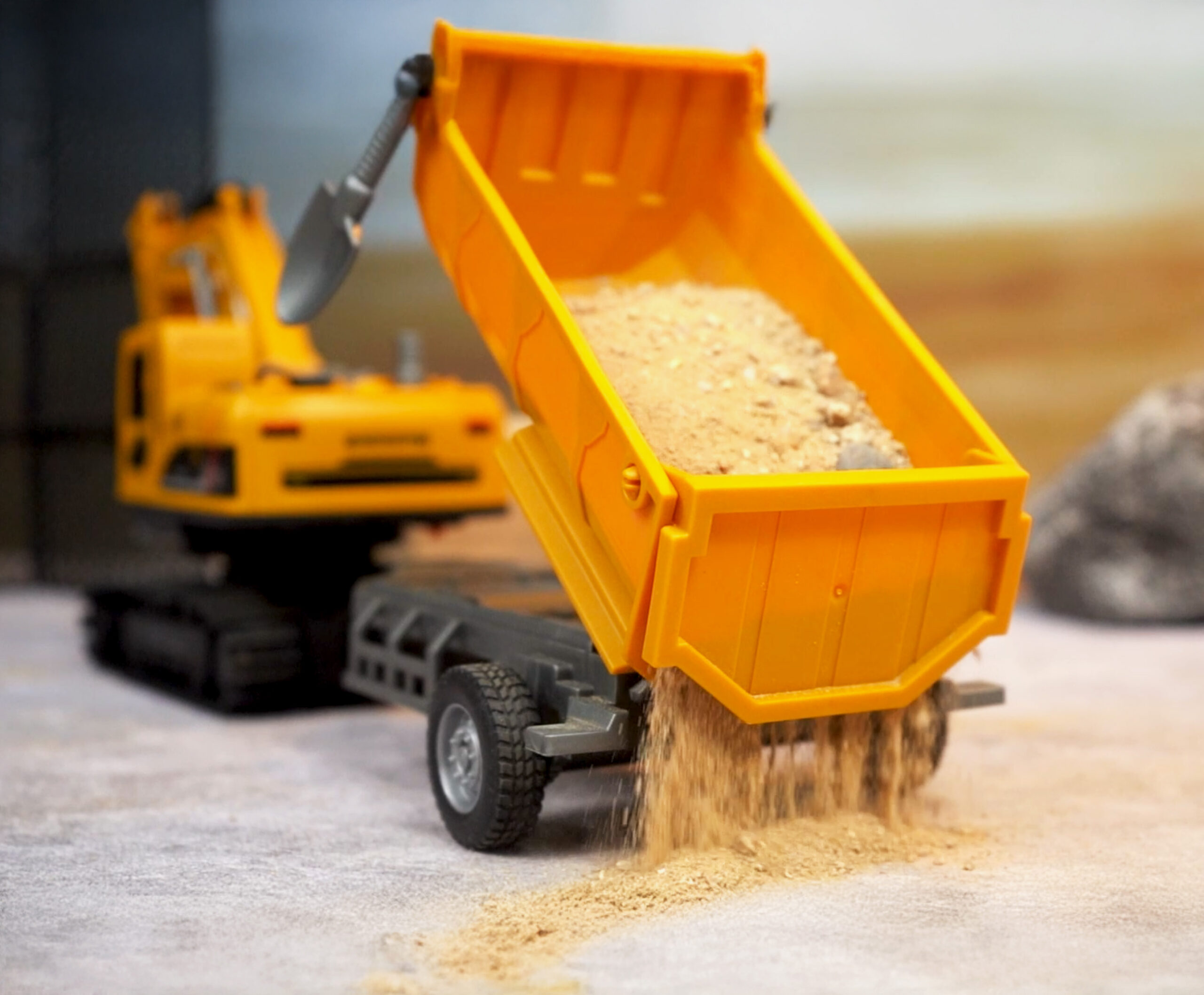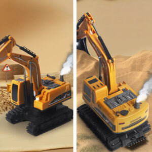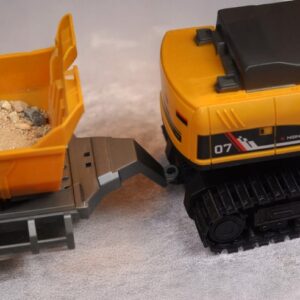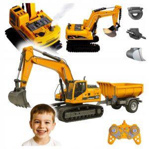Setul RC cu excavator si basculanta ofera o experienta realista de joaca, perfect pentru copiii pasionati de utilaje de constructii. Vehiculele sunt dotate cu lumini, miscare si efect de abur, iar atasamentele interschimbabile pentru excavator permit diferite scenarii de lucru. Telecomanda inclusa faciliteaza controlul usor, iar jocul dezvolta coordonarea si imaginatia celor mici.